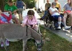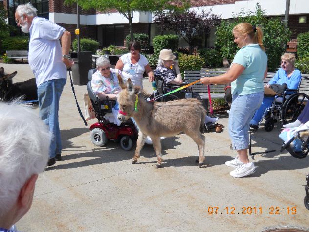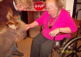 We are deeply committed to raising the very finest miniature donkeys possible. All foals are imprinted at birth, and handled everyday. We have had extensive experience using our miniature donkeys as "therapy animals." We have several jennet that has logged over 1000 hours of community service: visiting nursing homes, challenged people, schools, and churches. |